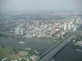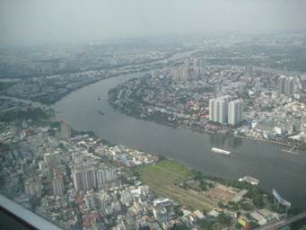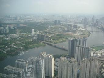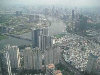 サイゴン川対岸にあるホーチミンで一番高いビル「ランドマーク81」を目指します。
