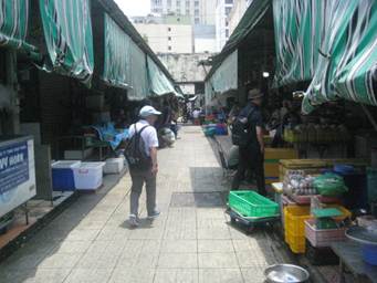 徒歩でベンタイン市場へ向かいます。