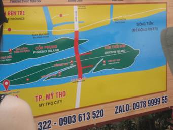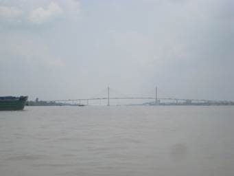 河口のため、メコン川の川幅は数キロあり、その中に中州があります。