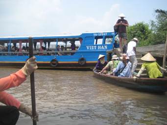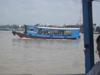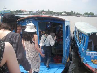 メコン川へ出て、そこから観光船に乗り換えてミトーへ向かいます。