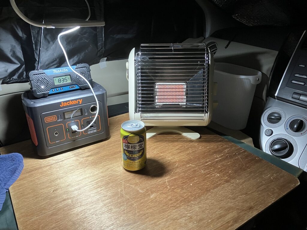 ポータブル電源を持参したため、LED室内灯、電気あんかが使用可能で、スマホ・タブレットの充電も可能です。