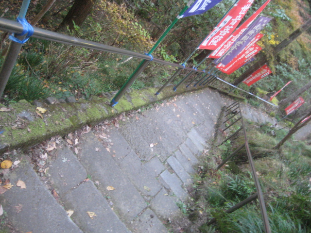 長い階段の脇には物資運搬用のモノレールのレールと思われるものも設置されております。