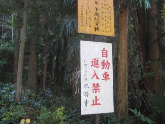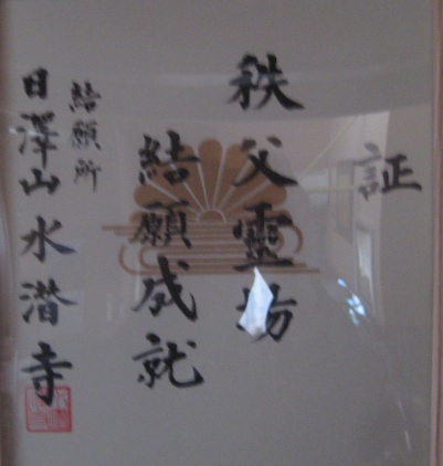 クマ注意の立て札がある34番札所「日沢山水潜寺」で、「秩父結願の証」と「日本百観音結願の証」を頂きました。