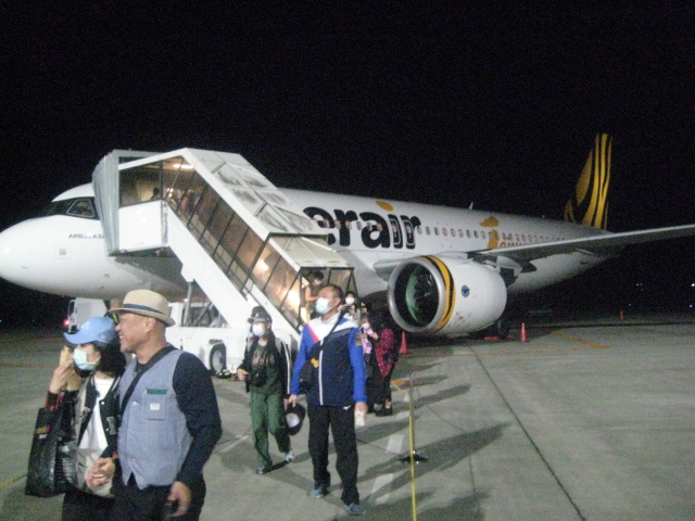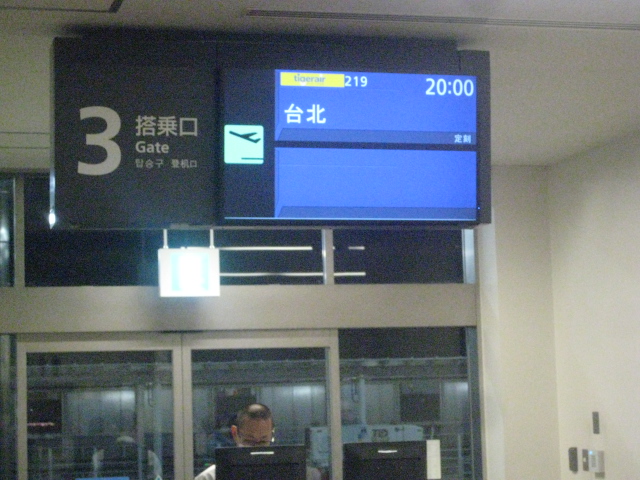 茨城空港20:00発「タイガーエア台湾」の飛行機です。