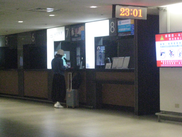 時差―1時間で23:00前には台湾桃園空港に着くことができました。