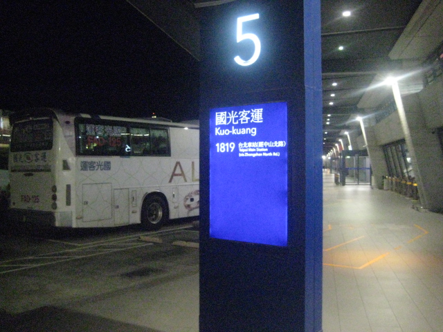 この時間になるとMRT(市内地下鉄)も運行しておらず、タクシーを利用すると台北まで7~8000円程度掛かってしまうため、24時間運行のバスを利用することにしました。夜間でも30分間隔くらいで運行しているので、安心です。料金も数百円です。