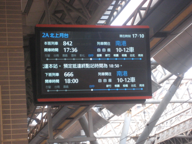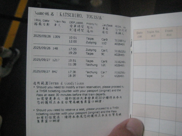 翌日も台中へ行こうと思っておりましたのでその旨を伝えると、2日分の座席を予約してくれました・・・親切ですね。