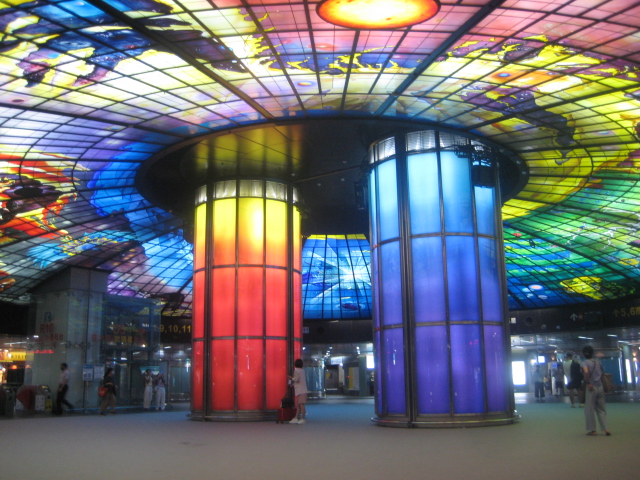 ここの駅構内には4500枚ものステンドグラスを使用した天井があります。