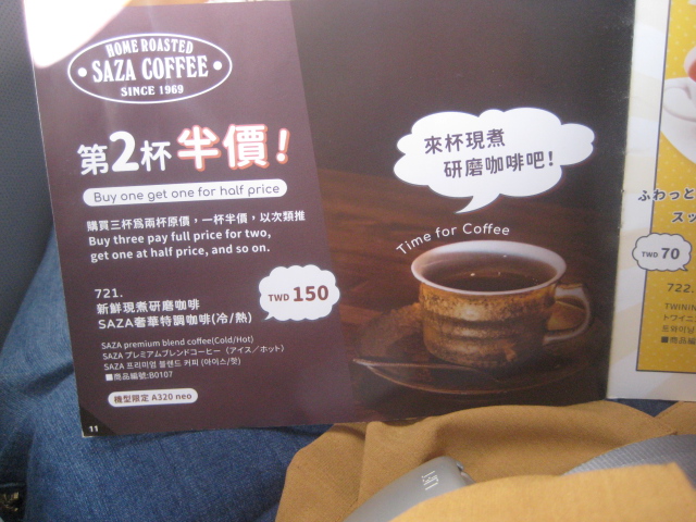 機内の雑誌に「SAZA COFFEE」の宣伝があります。